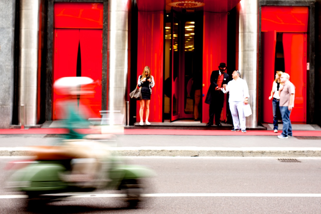 Mi attrae il colore, i soggetti in gioco e la dinamicità resa dalla motoretta in primo piano.