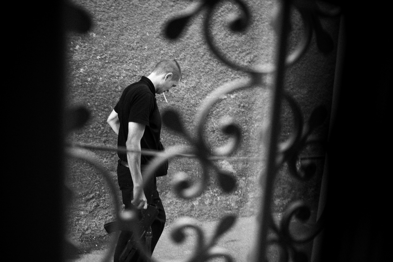 | Il mitra fa la foto e il mitra la uccide. Nel senso che è l'elemento portante dello scatto ma allo stesso tempo così tagliato da un senso di scatto al volo, immagino comunque non sia facile scattare immagini di questo tipo e che l'emotività giochi sicuramente un ruolo molto forte, inquadrata meglio sarebbe stata una grande foto. |