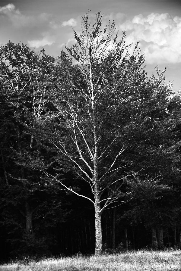Bello il bianco e nero con una gran varietà di toni. Mi piace come l'albero stacchi dal fondo grazie alla luce.