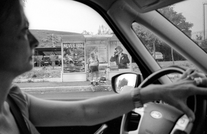 L'idea dello scatto era di fare della macchina una quinta e giocare con l'interfaccia interno/esterno... non so come mai questa foto l'ho immaginata così da subito e non perchè ero obbligato dalla posizione, anzi mi scoccia aver tagliato le dita della mano...