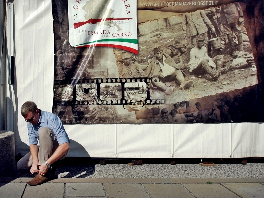 | Grazie Mario per l'attenzione a questo particolare scatto destinato al mio archivio personale proprio perchè nato da ardui collegamenti mentali e sensazioni che so di non poter trasmettere con questa immagine ma che ho voluto ugualmente condividere.Il titolo ha preceduto lo scatto,quando ho visto la scena dal profondo della memoria mi è rimbalzata la frase di un antico gioco:"Tutti giù per terra!" ed ho inconsciamente premuto il pulsante. Carso ed Ermada due luoghi legati ai furiosi scontri tra Italiani ed Austriaci nella Prima Guerra Mondiale,migliaia di morti,alla fine,come il signore che si allaccia le scarpe,come in tutte le guerre,vincitori e vinti,"Tutti giù per terra!"Scusa questa lunga spiegazione per una foto che solo per questo non può essere valida ma per me resta importante!Ciao,Sergio. |