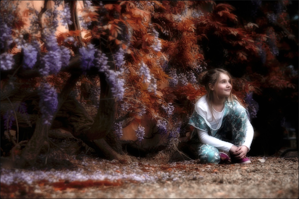 Un ritratto ambientato quasi fiabesco,belli i colori e la luce,buona la maf selettiva.Il monitor del portatile che sto usando non è affidabile ma potrebbero esserci delle alte luci eccessive sulla zona delle braccia,la bambina è molto carina ma l'espressione mi sembra un po' "posata". Ciao,Sergio. Smile