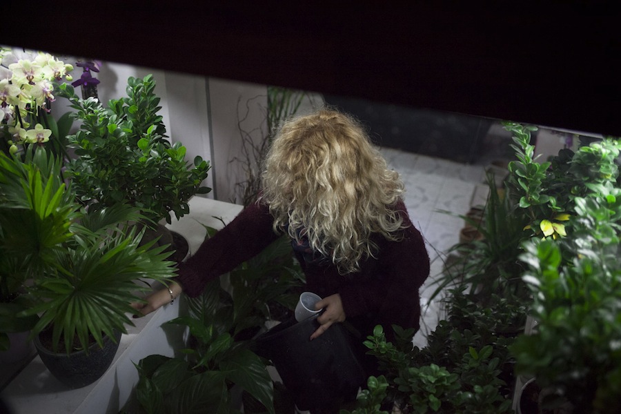 Una donna ripresa dall'alto nella sua serra casalinga in cui si vede solo la bionda capigliatura con un bicchiere di plastica in mano cos'ha di Street?