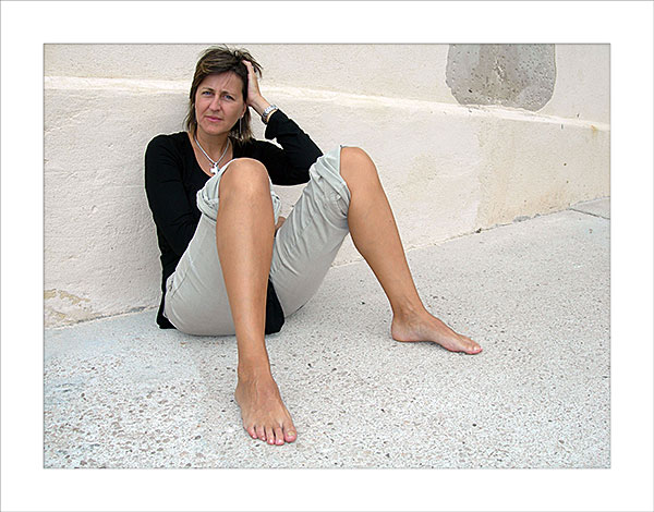 ambientazione interessante, ma trovo poco sfruttata la presenza dei potenziali incisivi grafismi offerti dalle linee del muretto e dal selciato; probabilmente un po' da tagliare in basso.