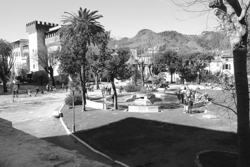 D'inverno non è facile trovare un sole pieno, una temperatura mite e assenza di vento, e così le persone anziane, o meglio (senza nessun tipo di disprezzo), i vecchi di Carrara sono usciti di buon ora, senza appuntamento, ma sicuri di incontrarsi vicino alla palla che ruota, in piazza. I pensieri sono sempre tanti a quella età, ma tutti sanno quanto è piacevole sentire il sole che penetra nelle ossa e poter scambiare due chiacchiere con gli amici di sempre. E' un piacere che si capisce dagli sguardi di queste persone e che impari ad apprezzare se solo hai la forza di fermarti e ascoltare.