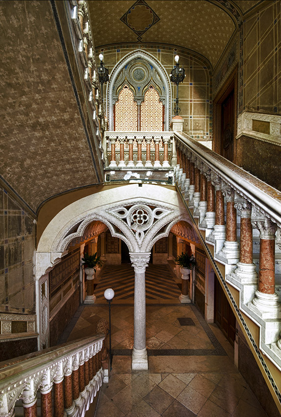 Di primo acchito quella a-simmetria tra destra sinistra spiazza un po'.. perché la scalinata che sale spezza la visione di quello che c'è in basso in quella porzione di fotogramma.. però poi si apprezza la struttura anche delle colonne che la costeggiano.. e lo sguardo riesce ad andare verso l'alto.. dove mi rimane un dubbio, visto quell'elemento sulla volta 'pizzicato' dal taglio.. magari leggerissimo passo indietro o leggermente l'inquadratura verso l'alto..?
