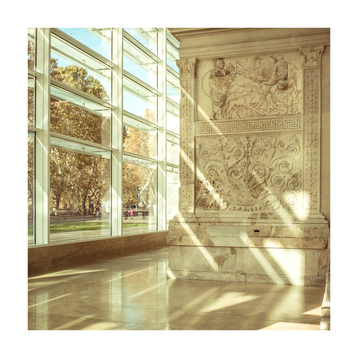 Soggetto che hai ben ripreso con questi sprazzi di luce che filtrando giocano con le superfici antiche e moderne dell'Ara Pacis.