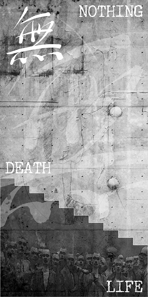Trovo quanto mai perfetto l'uso di quella linea spezzata data da una scalinata, che da sempre divide un alto da un basso, a creare il confine tra vita e morte.. tra il nulla e il tutto..