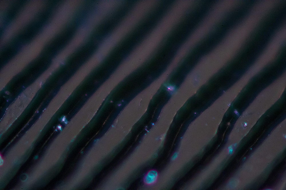 Macrofotografia di solchi di 33 giri (in gergo ''vinile'') realizzata in casa con attrezzatura artigianale. contest ''macro senza insetti''