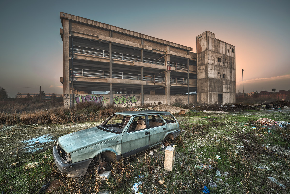 L'effetto è sicuramente d'impatto; come fotografia vedo solo una zona degradata ben ripresa con un grandangolare.
