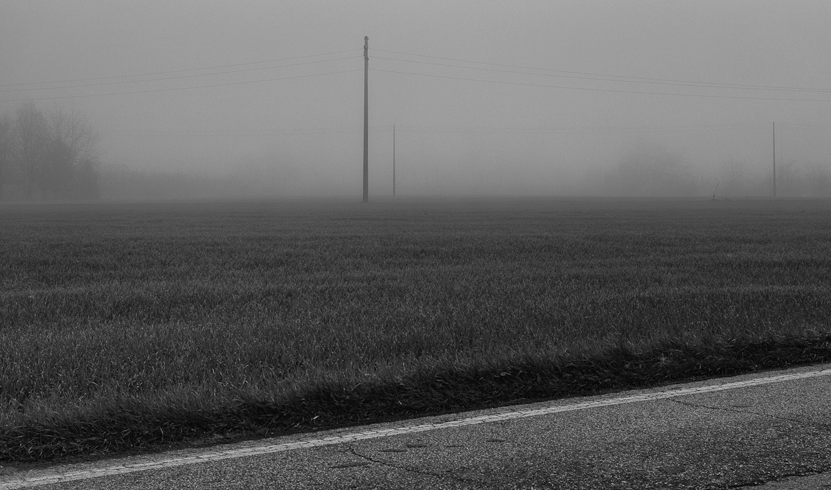 Ottima composizione e buon bn con tonalità adeguate all'atmosfera invernale.Uno scatto che trasmette il freddo e l'umido di questa stagione.  |