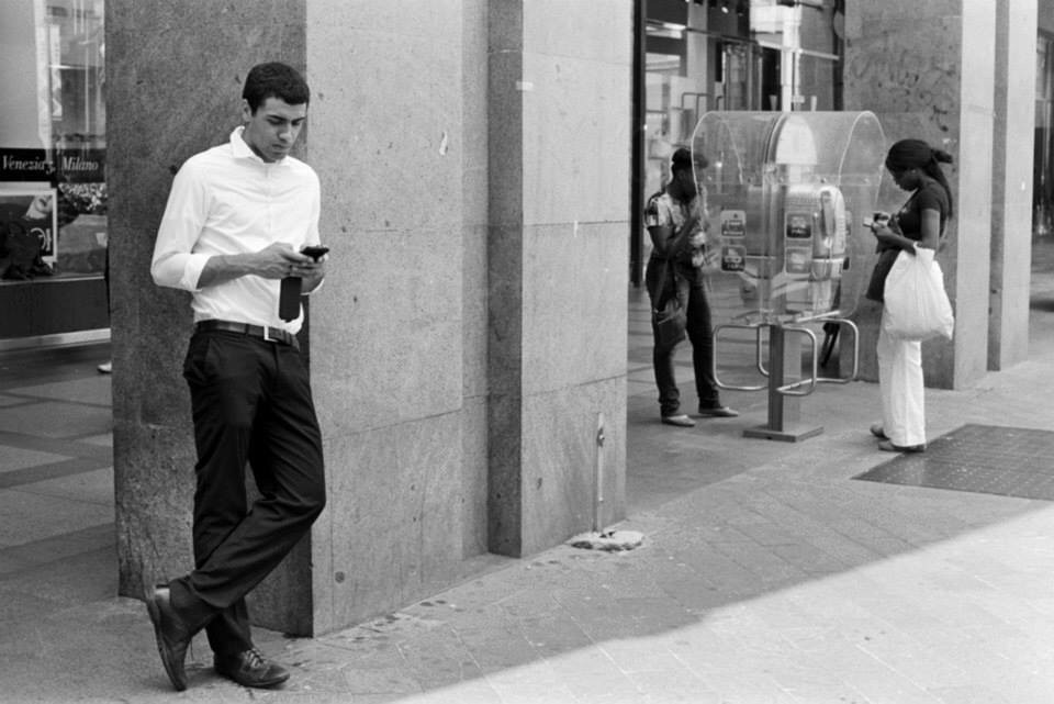 Assonanza dell'atto e specularità dei soggetti...forse se ti spostavi a sx riuscivi ad escludere il 'terzo incomodo' davanti all'altro telefono (?). Per me, ben vista!