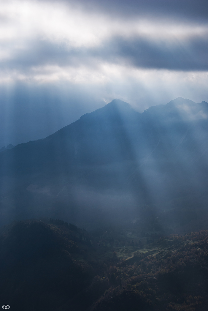 Molto belli i raggi di luce che attraversano in diagonale il fotogramma facendosi strada nella foschia ed andando ad illuminare debolmente la parte bassa del territorio.Le tonalità piuttosto fredde accentuano anche questa sensazione,che almeno io provo,di paesaggio primordiale.Mi piace! Ok!