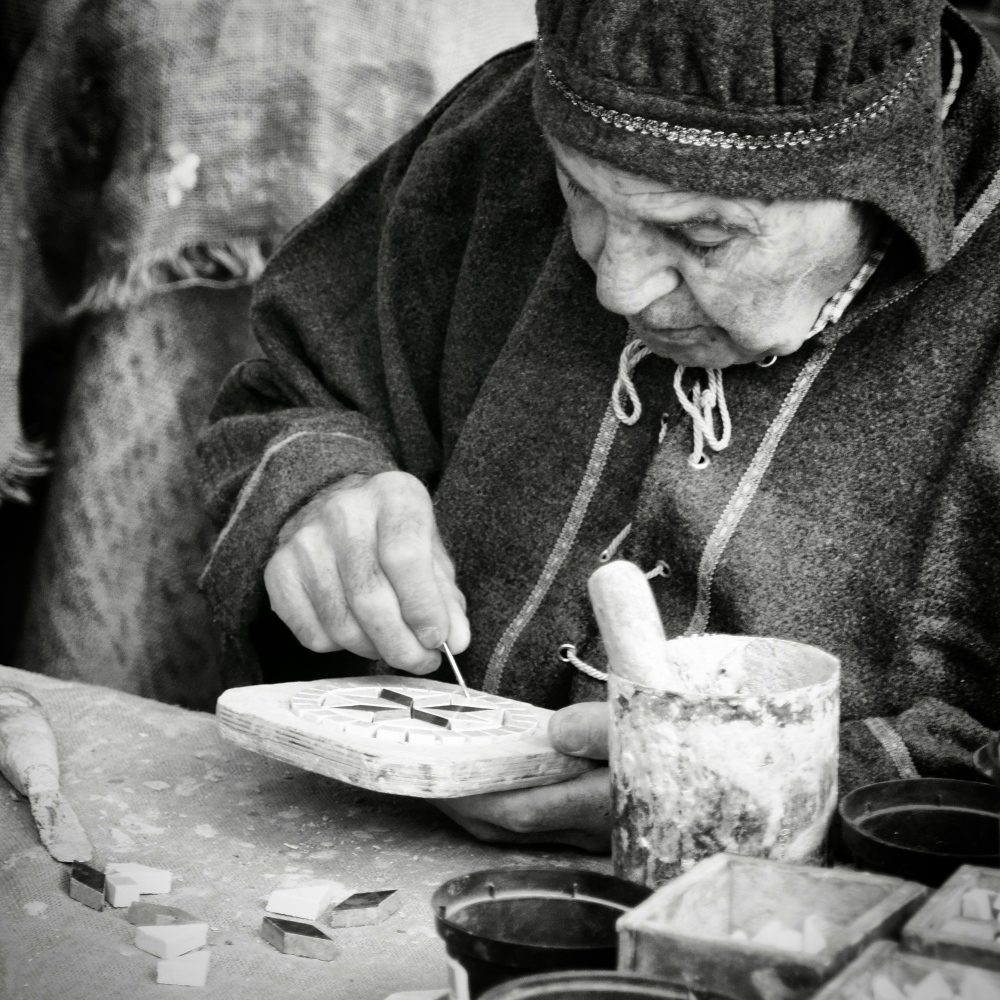 Intensa l'espressione dell'artigiano preso dal suo lavoro,bello il bn,ottima immagine!  |