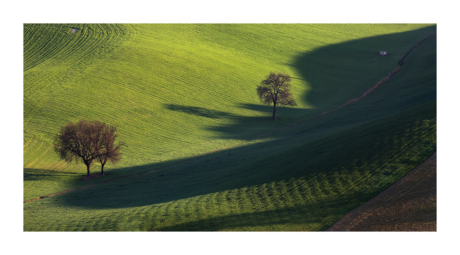 Bella, sembra l'ombra di una grande mano con l'indice allungato. Semplice e ben composta, un solo appunto sull'ombra della coppia d'alberi a sinistra tagliata..., forse si poteva far meglio...