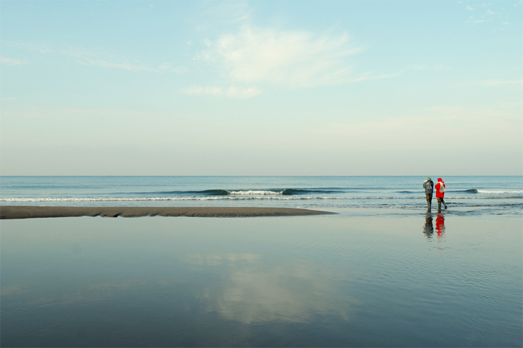 Bellissima foto, ti è uscito tutto alla perfezione.La striscia di sabbia che guida lo sguardo verso le figure, splendidamente riflesse, insieme alla nuvola, nello specchio d'acqua. Anche questa preferita.