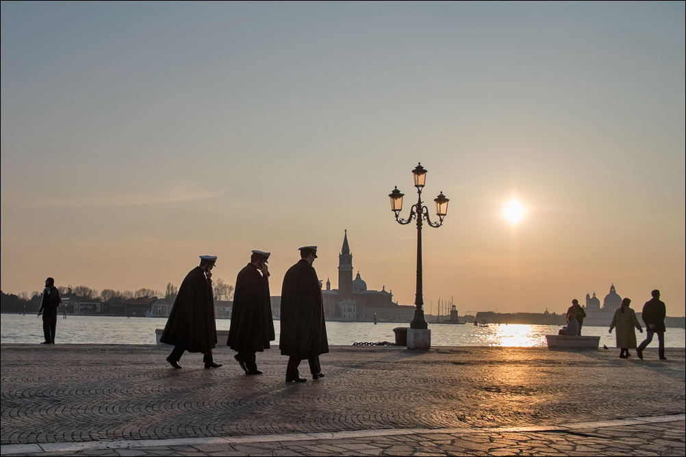 Ottimo controluce,belle le tre figure di militari intente a cercare con i telefonini forse lontani affetti in contrasto con le due coppie.Avrei provato anche un formato 16/9 tagliando a sinistra l'uomo solo.Complimenti!  |