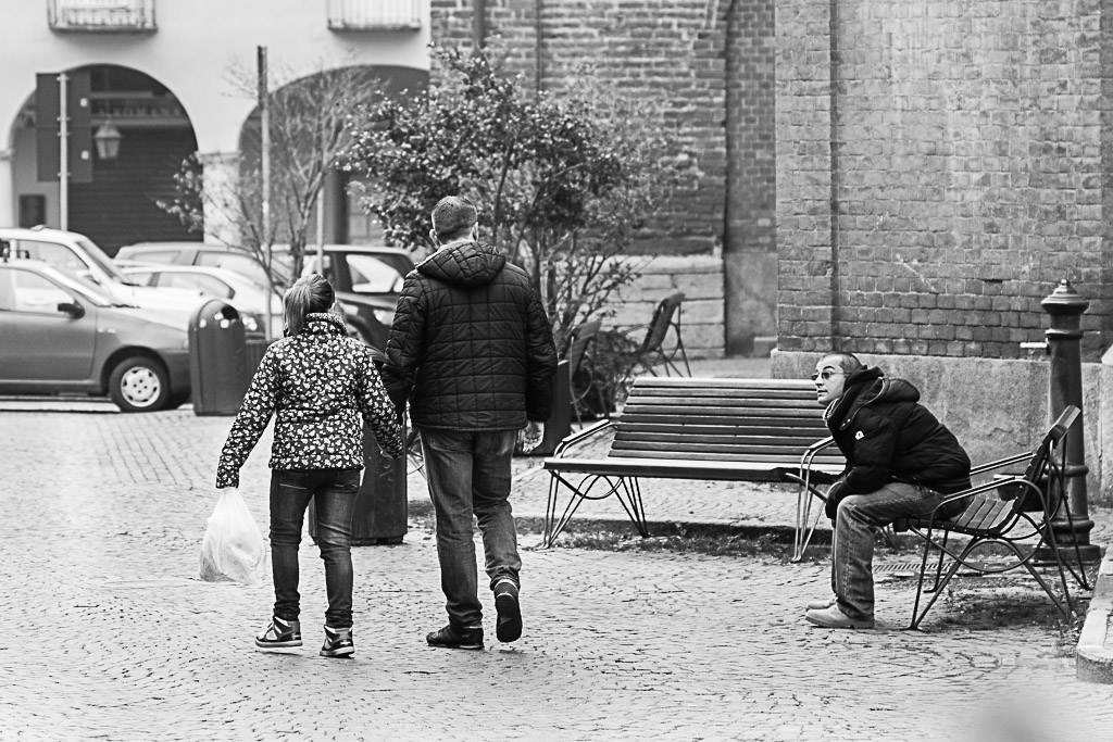 Sinceramente dal frame non riesco a leggere la scena che hai vissuto in prima persona, e non mi sembra neanche memorabile l'azione in sè, i due soggetti , presumo padre e figlia, sono ripresi di spalle, il ragazzo seduto, apparentemente innocuo, sia dalla posa che dall'abbigliamento alza la testa, magari per chiedere qualcosa o magari solo per istinto..ma non trovo quel quid che la renda interessante, ma sicuramente è un mio limite.