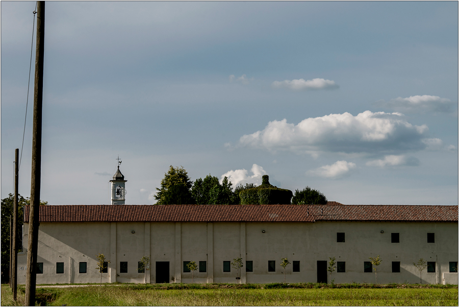 Immagine molto bella ma che mi ispira un po' di malinconia.Il cavo sostenuto dai pali sembra essere l'unico contatto con l'esterno,l'edificio anche se costituito da un unico corpo sembra diviso in due sezioni,quella di sinistra ha le finestre superiori rivolte verso l'interno suppongo.Mi piace e mi inquieta.Complimenti!Ciao,Sergio.