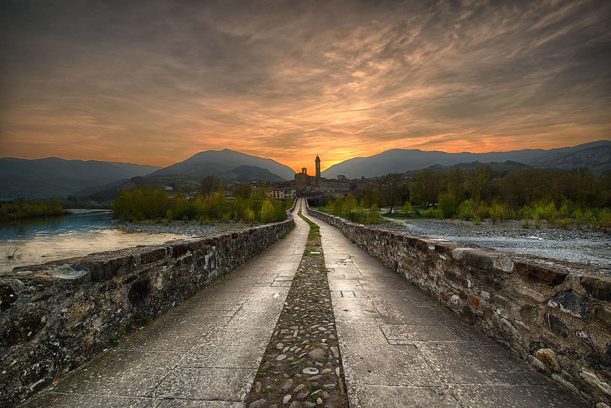 Bella prospettiva e bella ripresa; la parte alta del cielo a destra è favolosa. Dal punto di vista compositivo mi piace proprio così com'è la strada lastricata del ponte ci conduce senza alcuno sforzo attraverso tutto il frame. Bella.
