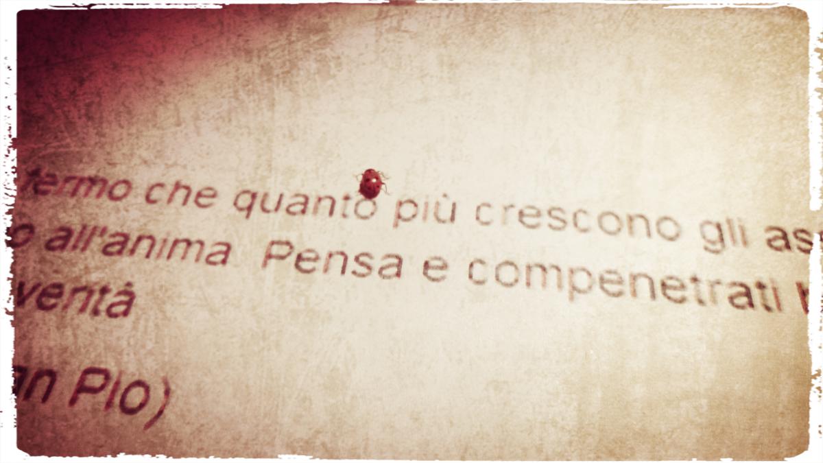 è che quella coccinella si era posata su un foglio con su una frase di San Pio.