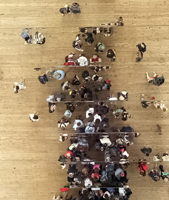 Idea molto usata, quella di fotografare una superficie che riflette non il fotografo ma altro o mi sbaglio, intravdendo qualcuno che alza lo sguardo e fotografa?, in questo caso la folla che passa (Expo?) le persone tagliate in basso e al lato destro, forse penalizzano lo scatto, la compressione e/o la risoluzione della foto non aiutano nella lettura...