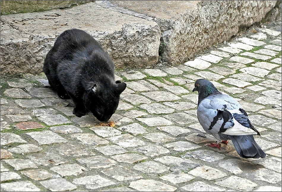 Veramente,Cesare,il gatto era più preoccupato dei miei movimenti ed il colombo è volato via tranquillo.Se avessi abbassato il punto di ripresa sarebbero entrati nell'inquadratura elementi di disturbo.Ti ringrazio tantissimo per la tua attenzione.Ciao,Sergio. Smile