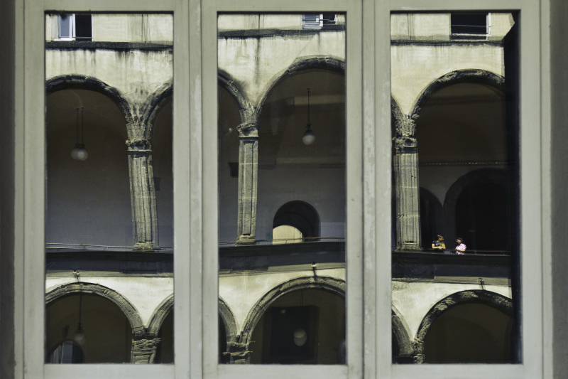 Per quanto riguarda la finestra a fuoco, purtroppo ero molto vicino alla finestra e molto lontano dal riflesso, inoltre in posizione assai precaria, ho quindi pensato che tra la finestra non a fuoco e i doppi vetri che davano un doppio riflesso sovrapposto e sfalsato potevo creare una situazione di apparente mosso-sfocato che poi non era tale. L'idea mi è venuta pensando ad un vecchio contest (errore di messa a fuoco)