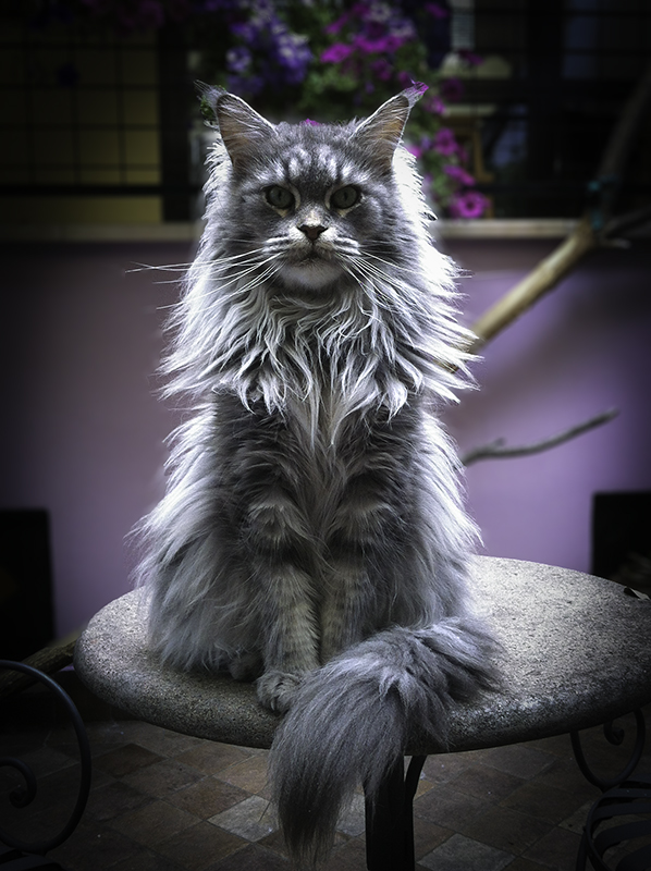 A me non dispiace né la vignettatura, né la luce sul pelo esterno. E, anzi, avrei messo il gatto ancora più centrale. Sembra un monarca tremendo sul suo trono. Inquietante.