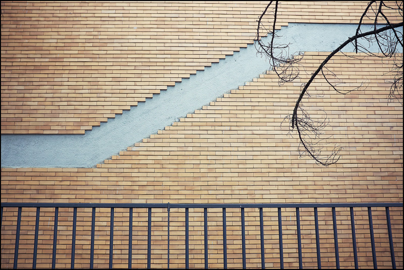 Irrompe da destra il fraseggio dei rami quasi a voler disturbare le geometrie della composizione. Molto bella.