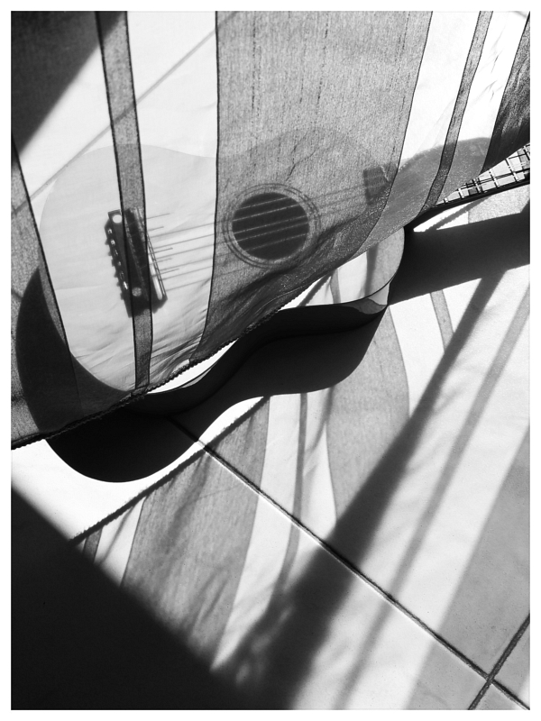 Cubista e picassiana nella capacità di spezzare l'immagine (e su un soggetto come la chitarra, poi...).