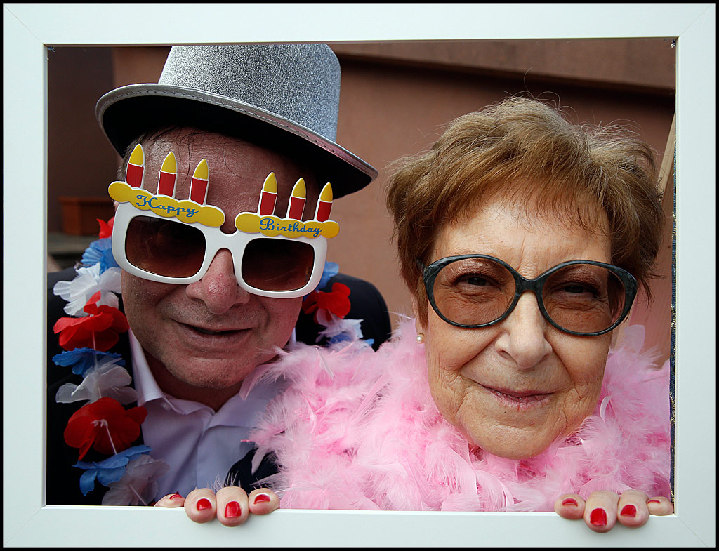Affettuosa, allegramente dolce, e con un filo di malinconia, nascosta nelle pieghe di un doppio ritratto dalle pose un po' clownesche... e con la simpatia di quelle dita dallo smalto rosso fuoco, che fanno capolino in appoggio al bianco della cornice intelaiatura...