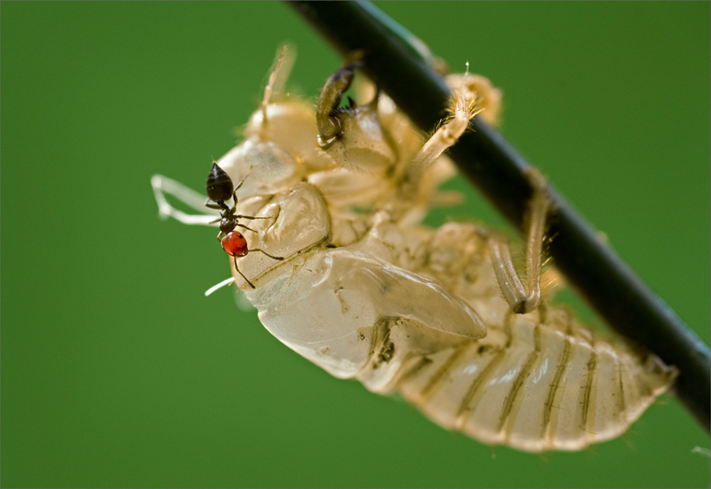 La Formica sembra proprio piccina piccina difronte all'exuvia della Cicala...molto buono il risultato ottenuto,complimenti Diego