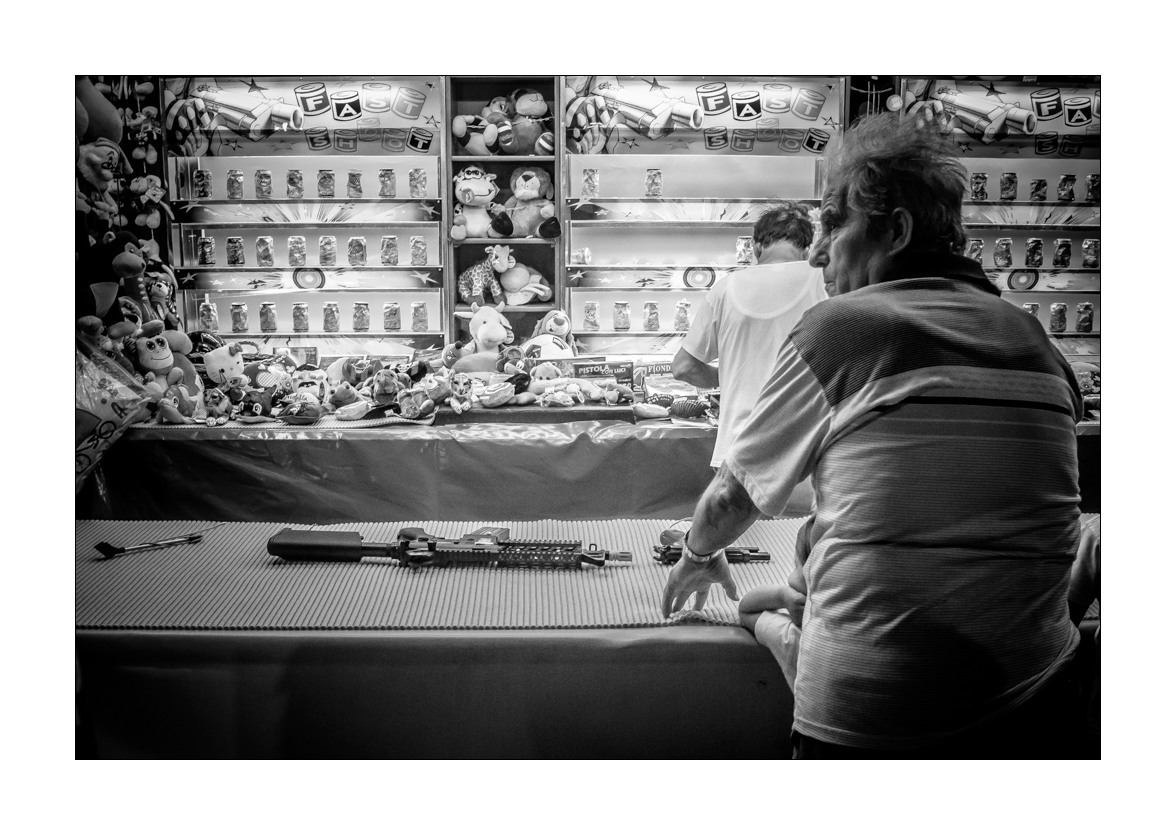Per quanto riguarda il commento sulla Street, ciò che mi ha spinto a fotografare e anche ad includerla in questa particolare categoria è stato il "dialogo" tra l'uomo, un tranquillo anziano anche se dal volto tirato in quel momento, e l'arma (anche se questa sì posticcia).