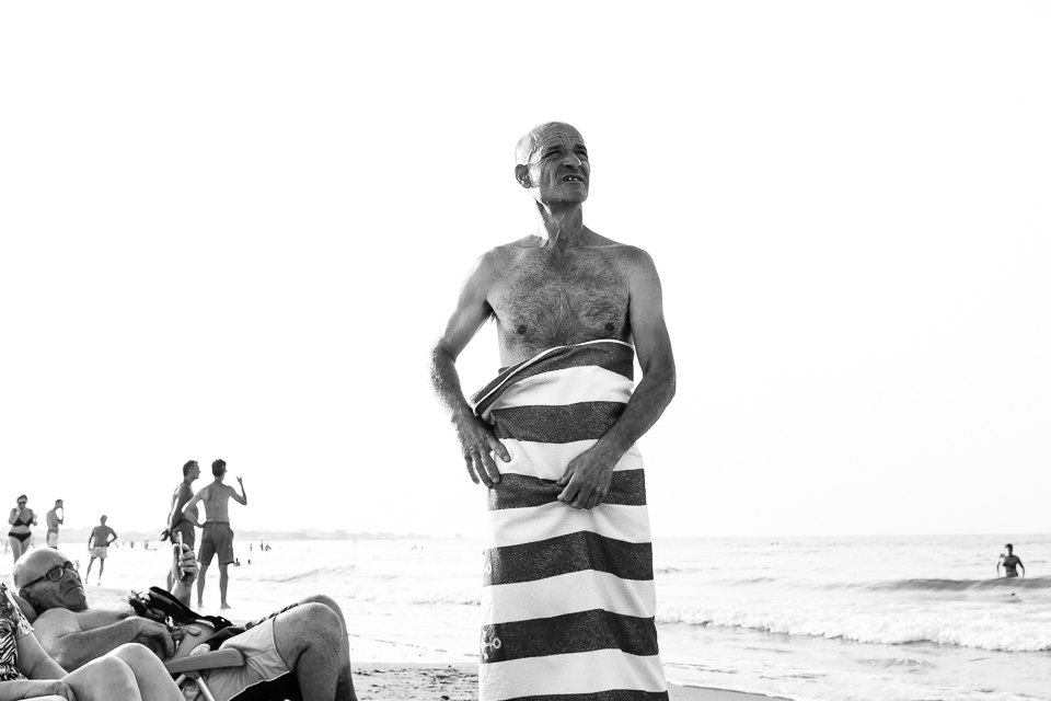 trovo la posa dell'uomo poco gradevole. La foto mi pare sovraesposta e quella persona a sinistra di cui spuntano solo le ginocchia andrebbe eliminata dal fotogramma.