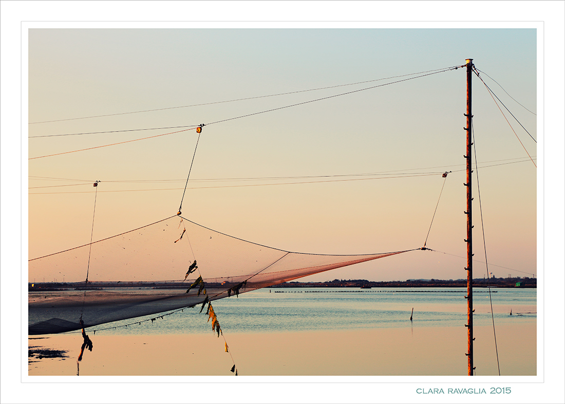 Concordo completamente con l'aggettivo "claresca". Riconossiuta come tua, subito, dall'anteprima... D'altra parte questo rosa e questo intreccio di reti sulla laguna sono tuoi marchi.