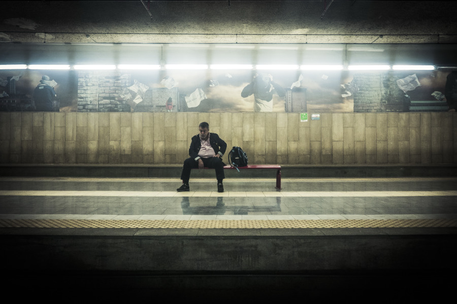Una vignettature importante a enfatizzare l'isolamento del soggetto osservato quasi attraverso un buco nel muro. Interessante il contrasto del soggetto solo con la moltitudine di persone non reali dei cartelli posti sopra a loro volta isolate ognuna nel proprio spazio pubblicitario. Ottimo controllo della luce che non risulta falsamente spenta e che ben conserva la leggibilità totale. Davvero bella Ok!