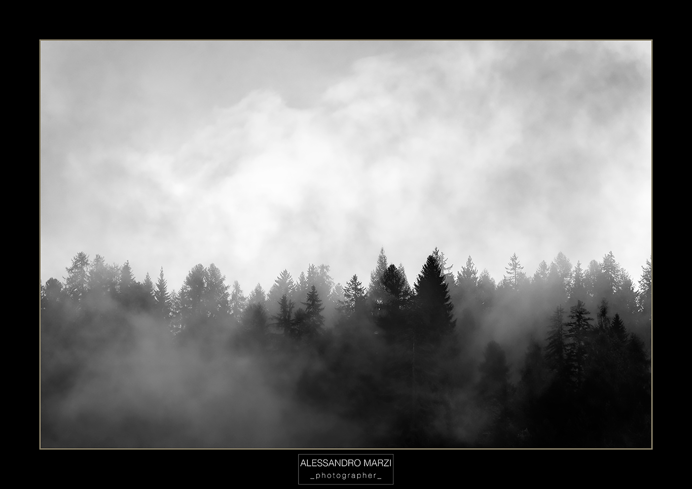 Un’immagine capace di molteplici interpretazioni a seconda dello stato d’animo di chi la osserva. Il fatto che sia “costruita” con pochi elementi rende la sua semplicità passibile di ulteriori letture. Due piani (cielo – suolo) , tre elementi (cielo – alberi – nebbia) ed uso di un B&N (giustamente) poco contrastato.
