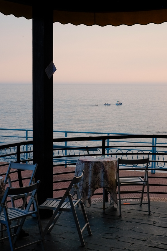 Un pochino confusa e disordinata a mio avviso la composizione. Non c'è un vero punto di interesse e le sole imbarcazioni piccoline nello spazio aperto non reggono sufficientemente la scena. Poteva risultare un interessante gioco di forme con una condizione di luce migliore, senza tavolini e sedie e tagliando la parte in alto  _________________ - Fotografo della domenica |