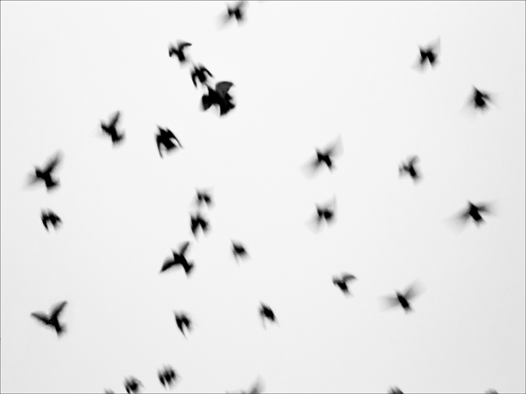 Stamane intorno casa c'era un enorme stormo di uccelli, dal fragoroso cinquettio e dall'emozionante sbattere delle ali.