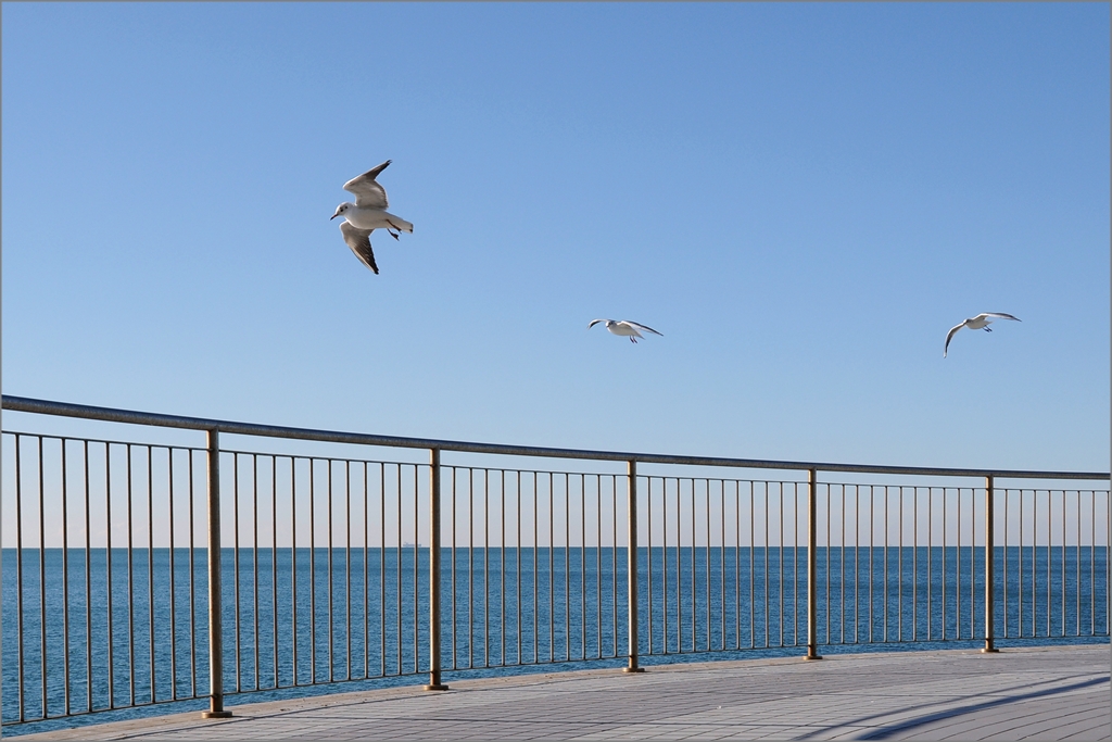 Bella Sergio! Questi tre gabbiani quasi allineati sembra che stiano guardando la stessa cosa.