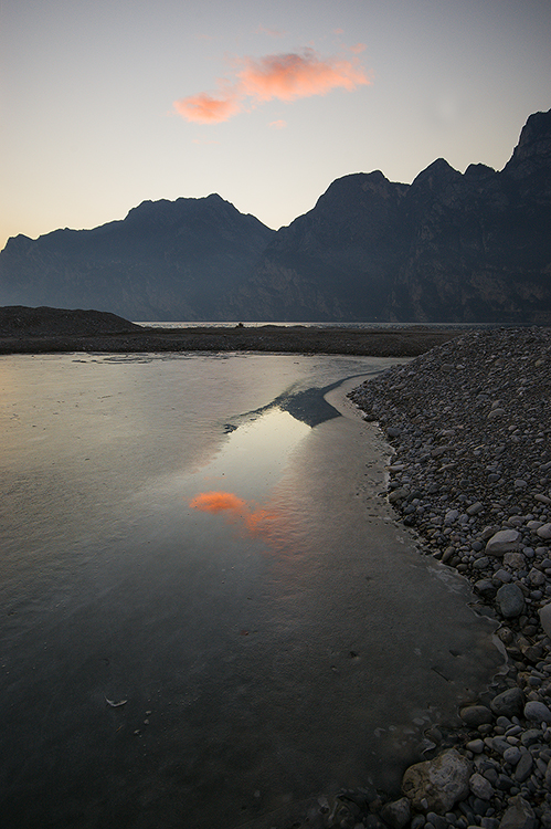 Perfetta la nuvola che riflette solitaria e si stacca dai colori scuri, avrei pure tagliato un pò sotto per disperderla meno.... Wink