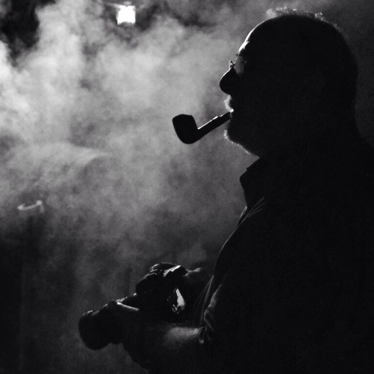 Bella silhouette mi piace soprattutto il profilo della faccia con la pipa.