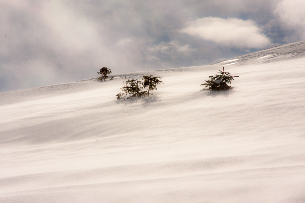 Neve e vento, e un piccolo manipolo di cime d'albero che resistono... pur semisommerse . Molto carina.