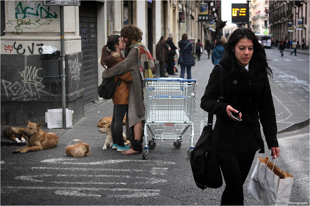 Vera street e la ragazza in primo piano per me aumenta i pregi della foto. Mi piace. Situazione non originalissima (purtroppo). Io ne ho una simile, in cui però la "padrona" in ginocchio si sbaciucchia col suo cagnone muso a...muso, mentre il suo amico osserva indifferente Ciao