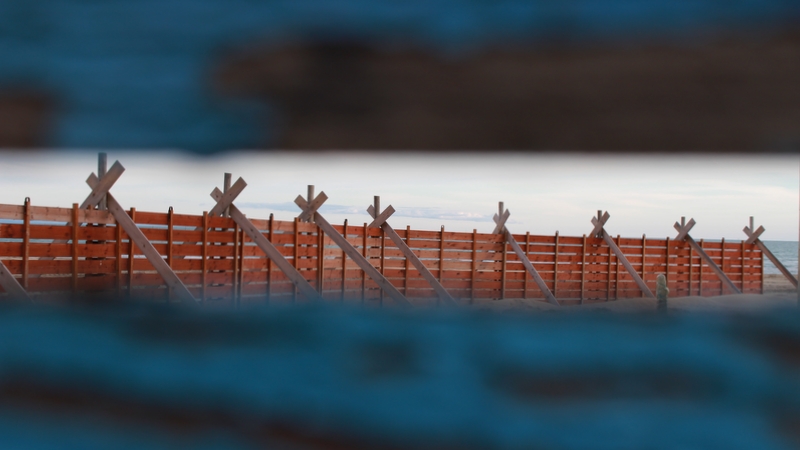 Era difficile fotografare da quella fessura di pochi centimetri ..... le tavole di legno dipinte da murales di colore blu hanno creato quell'effetto che mi è piaciuto perché richiamava il blu del mare