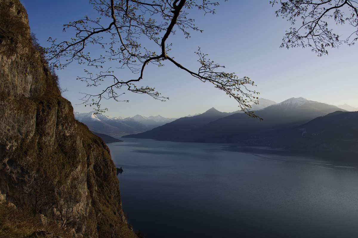 Quando ho visto il ramo, ho ritenuto potesse guidare l'occhio verso le montagne, ho cercato di abbassarmi il piu' possibile per non farlo sovrapporre con le cime. Anche a me sembra ci sia un problema di compressione, si nota (credo) solo sulla parte scura del lago.