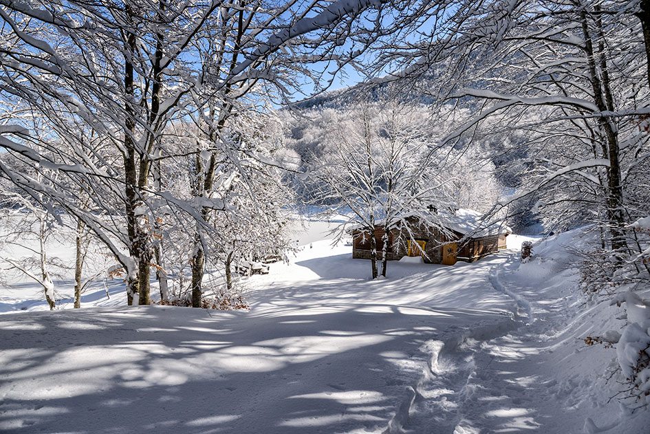 Incantevole scena composta benissimo e con colori naturali e fedeli. La neve è resa in modo eccellente. I due alberi che impallano lo chalet impediscono di goderlo appieno ma a meno di andare in giro muniti di motosega ci potevi fare ben poco e comunque hai portato a casa uno scatto speciale.