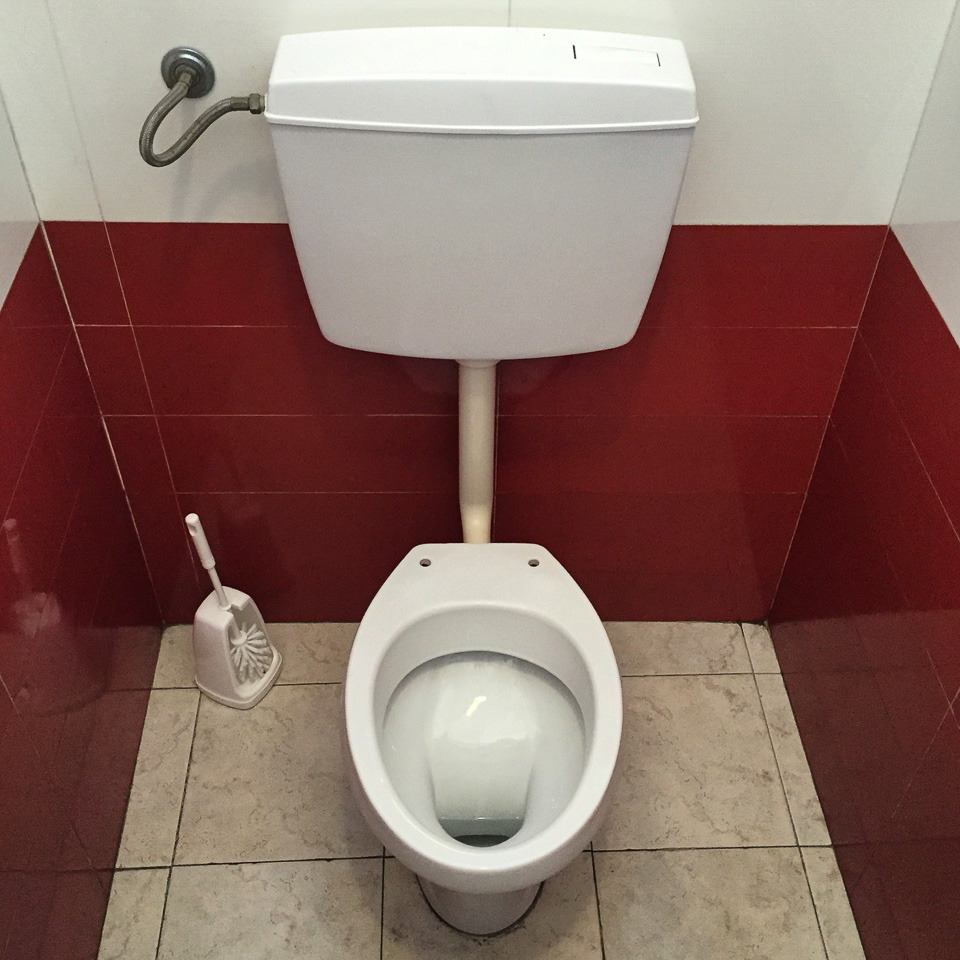 Dopo molteplici fotografie su paesaggi, architetture e persone, l'autore posta questa foto, una tazza di un cesso, uno scopettino, un punto di ripresa non particolarissimo, la posta nella Sezione Varie, perche' di certo Architettura non e', neanche Street mancando una scena con o senza umani, o ArtWork, niente di artefatto, tutto vero, signori. Tutto vero.
