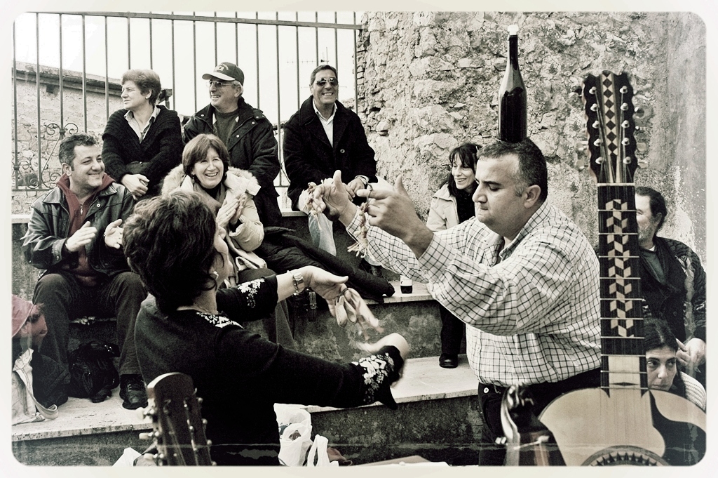 Grazie Cristian!Eravamo,nel basso Lazio,ad una riunione annuale di appassionati di musiche e strumenti tradizionali ed ogni tanto qualche partecipante si esibiva spontaneamente in canti o balli.Questo signore è riuscito a ballare una sfrenata tarantella,tenendo in bilico sulla testa una bottiglia piena di vino(che non ha fatto cadere ed alla fine tutti abbiamo bevuto!)al ritmo della magica e potente "tammorra" percossa,alle mie spalle,dal mitico "O Lione" costruttore e suonatore di strumenti tradizionali.
